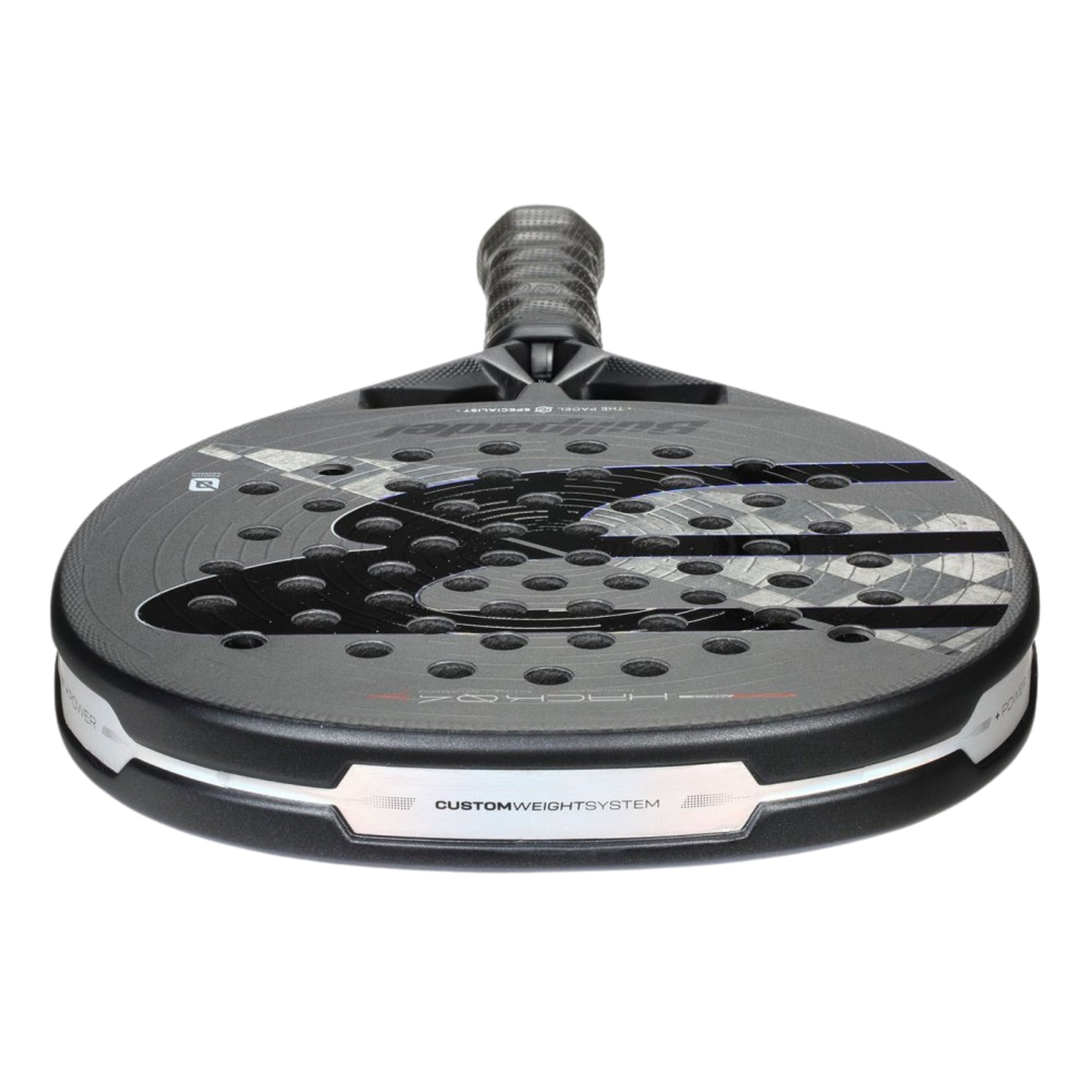 The 529 cm² hybrid playing surface with balanced 25 cm sweet spot provides ideal versatility for control and counterattack play with Padel Balls. The MultiEva sandwich core features firmer outer layers for explosive power and softer inner core for comfortable, forgiving play. The redesigned Smart Holes pattern provides balanced distribution for greater flexibility and larger sweet spot, whilst 3D Grain concentric circles optimise spin on groundstrokes and delicate net shots.